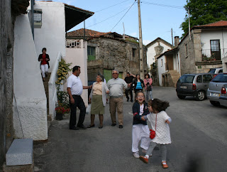 observando a azáfama que vai na rua onde as crianças correm alegremente à frente dos adulto que vão visitando às várias casas da sua amizade.