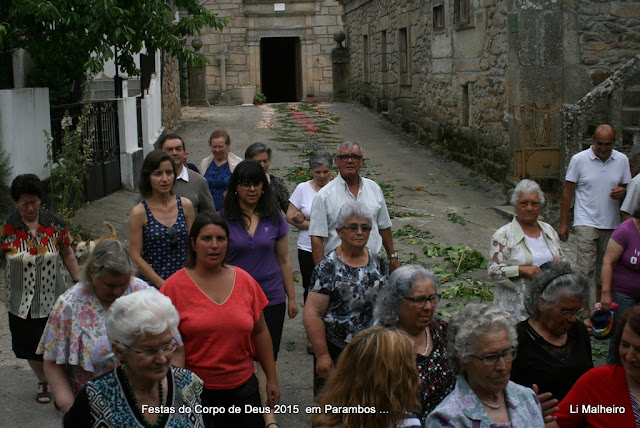 depois da missa inicia-se a procissão que vai percorrer, solenemente sobre o tapete de flores feito em honra do Corpo de Deus, as ruas de aldeia de Parambos