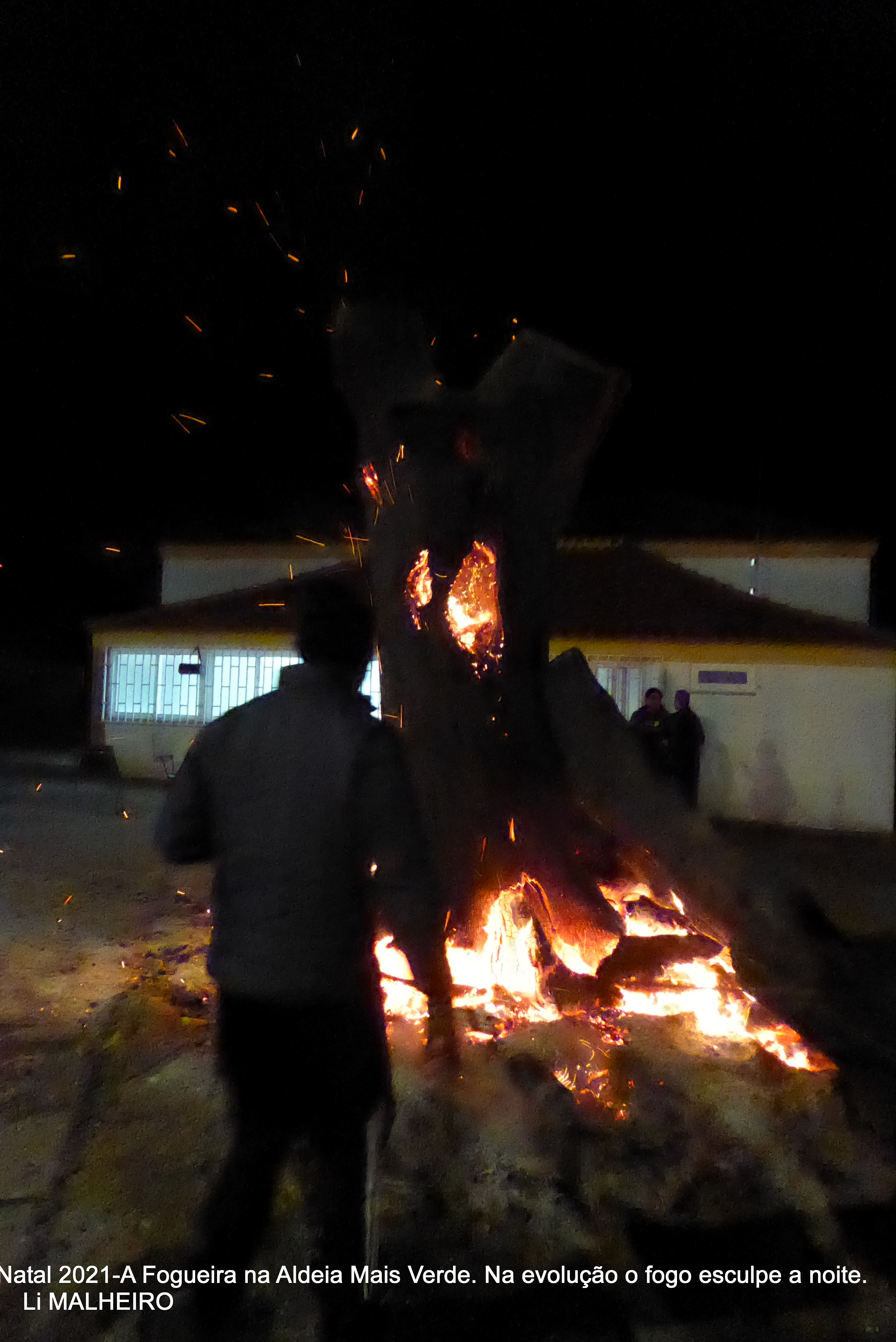 Voltamos à noite de 24 à volta da Fogueira e já quando a noite entrava em 25 podemos observar na evolução e construção constante e dinâmica que o fogo foi dando á canhota