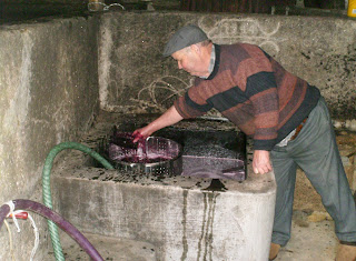 Depois de ter "fermentado", as Uvas transformadas em Mosto que foi trabalhado durante uma semana no lagar
