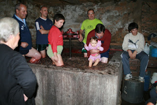 e  inicio da contribuição, da Joana,  para esta pisa. Assim este lagar ficará para a história como sendo o primeiro ter uma menina, de um ano feito à dias, a pisar como gente grande.