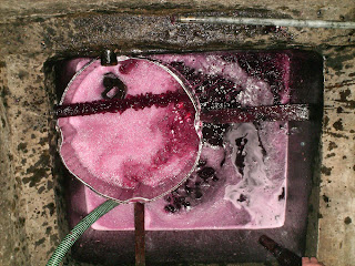 Hoje a tarefa está mais facilitada e depressa o lagar adquire este aspecto, puxando a fermentação que se vai prolongar por uns dias, dependendo da temperatura.