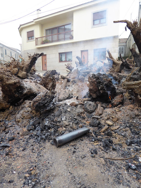 se nos lembrarmos, basta ver as postagens anteriores a esta, da altura da pira e compararmos agora vemos que já ardeu bem mais que metade