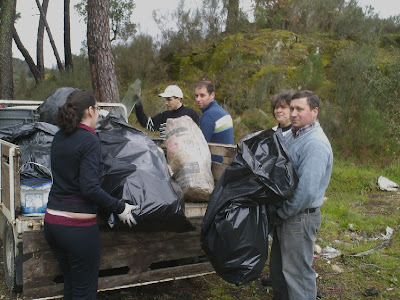 Em 5 horas conseguimos recolher 6 carradas de LIXO (ferro velho, vidro, plásticos, cartão, malas de madeira, alcatifas, colchões, electromomésticos e roupas).