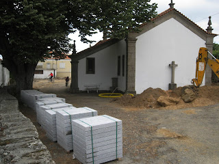 e os materias de acabamento, que irão criar um novo piso à volta de igreja.