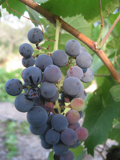 E as uvas, na nossa terra começam agora a " PINTAR O BAGO" assim meio escondidas pela folhagem vão amadurecendo