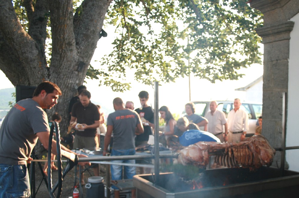 Como estava programado, o Reco tostou no espeto à hora marcada, chamando as pessoas com um belo cheirinho a carne assada no ponto.