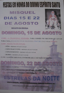 Divulgamos o cartaz das Festas do Divino Espirito Santo que se realiza na aldeia de Misquel, da Freguesia de Parambos